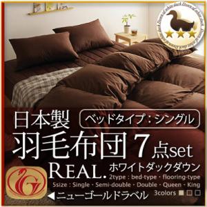 「ニューゴールドラベル」取得。今なら送料無料【送料無料】日本製 ホワイトダックダウン 羽毛布団 7点セット 【REAL.】 リアル ベッドタイプ:シングル(代引不可)【ポイント10倍】【10P16No