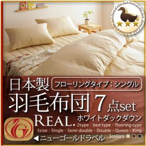 「ニューゴールドラベル」取得。今なら送料無料【送料無料】日本製 ホワイトダックダウン 羽毛布団 7点セット 【REAL.】 リアル フローリングタイプ:シングル(代引不可)【ポイント10倍】【10P1