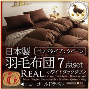 「ニューゴールドラベル」取得。今なら送料無料【送料無料】日本製 ホワイトダックダウン 羽毛布団 7点セット 【REAL.】 リアル ベッドタイプ:クイーン(代引不可)【ポイント10倍】【10P16No