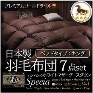 「プレミアムゴールドラベル」取得。今なら送料無料【送料無料】日本製 ポーランド産 ハンドピックホワイトマザーグースダウン 羽毛布団 7点セット 【Specia】 スペシア ベッドタイプ:キング(代引不